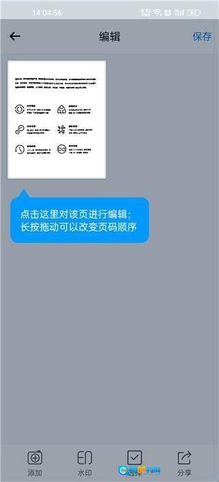 3、点击扫描的页面可以进行编辑,长按可以拖动页面进行页面排序。