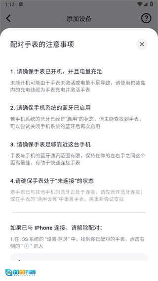 4、关于手表配对的【注意事项】,具体内容见下图。若您在配对过程中遇到问题,建议先对照图中的注意事项进行检查。