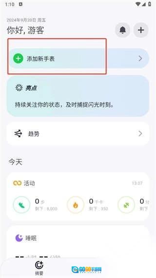 1、在fitbeing首页,点击【添加新手标】按钮。