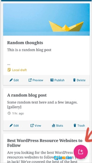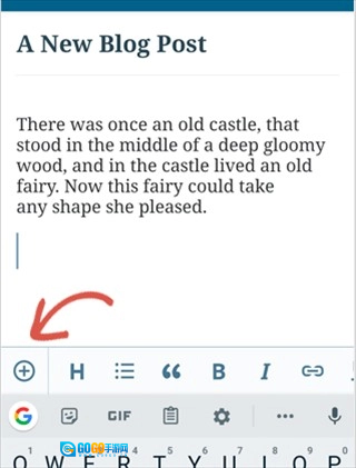 2、可以编辑任何博客文章或点击添加新按钮来创建新的博客文章。这将启动WordPress应用程序的内容编辑器。在这里,您可以使用的原生键盘写一个新帖子,底部有一个格式工具栏