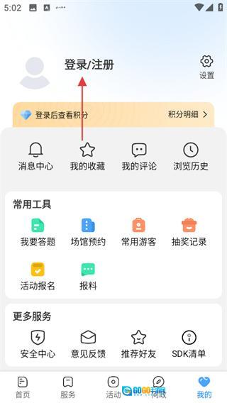 2、在个人页面,点击登录注册,进入登录页面。