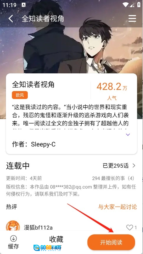 5、用户点开想看的漫画进入详情页,点击开始阅读。
