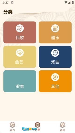 2、点击分类选项,里面包含民歌、器乐、曲艺、戏曲等类别,便于用户进行聆听。