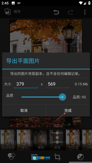 4、确认大小、品质,点击【完成】按钮即可。