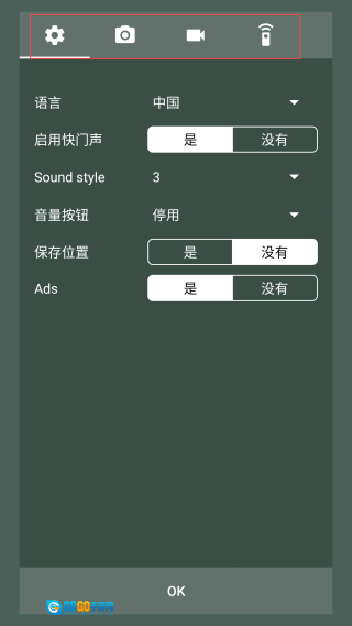 1、完成安装后,打开进入拍照界面,找到并点击“设置”按钮,对相关参数进行设置。