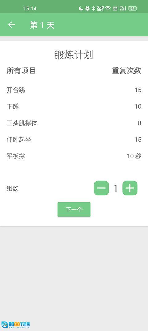 3、做出选择后,直接依据教程开启锻炼。你要记录下每天锻炼的次数以及持续时长。