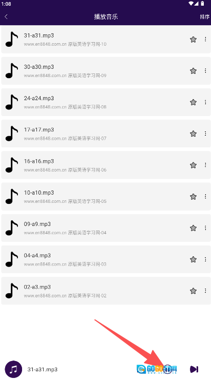 3、在播放界面点击暂停按钮,可控制当前选中音频的播放状态。