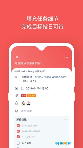 2、添加清单:在对应卡片内,为每一项事项拟定具体的待办清单;