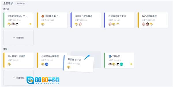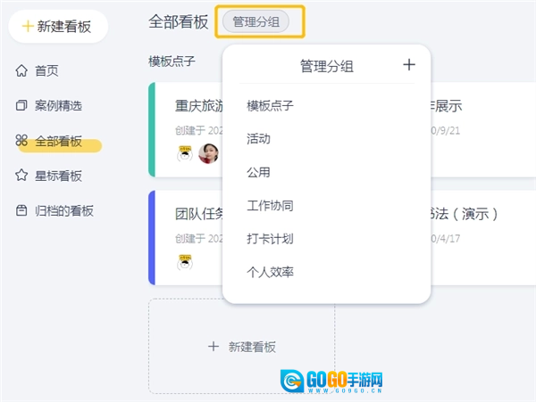 在“全部看板”页面,点击“管理分组”选项,即可进行看板分组的创建与管理操作。