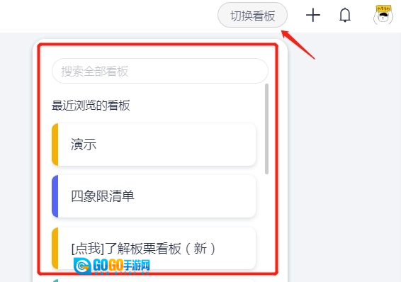 点击界面上方的「切换看板」按钮,输入目标看板的名称,就能快速完成不同看板之间的切换操作。