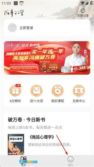 1、在成事不二堂的界面里,点击右下角的“我的”选项,就能进入个人页面。