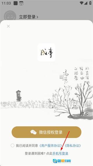 3、在登录选项页面,点击手机号登录,进入手机号登录界面。