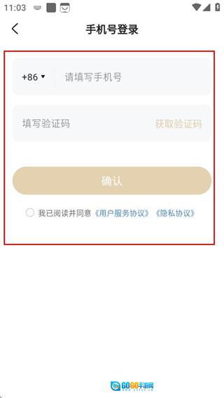 4、进入手机号登录界面后,填写相关信息并勾选协议,随后点击确认按钮就能完成登录操作。
