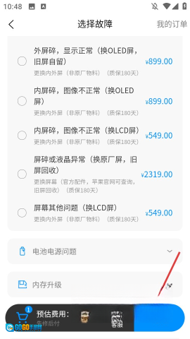 3、接下来,挑选具体的故障情形,确认好预估费用后,记得点击【确定】按钮哦。