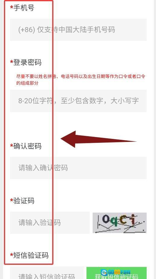 4、最后填写手机号、登录密码、验证码以及短信验证码,即可完成注册。