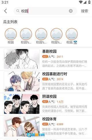 3、比如输入“校园”,页面就会展示瓜主列表里的最新推荐啦。