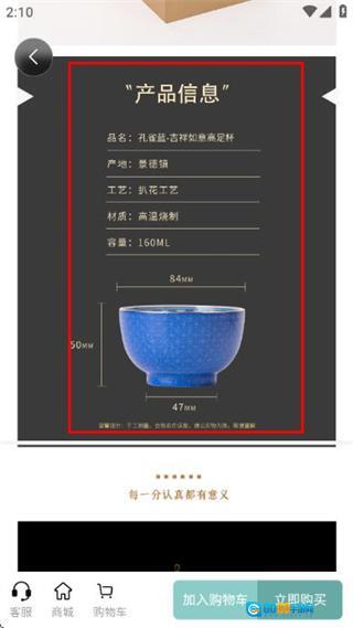 3、在商品详情页面向下滑动,就能看到产品信息板块,从中可以了解到该茶具的品名、产地、工艺等详细内容。