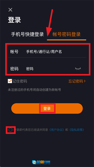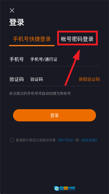 进入登录界面后,点击帐号密码登录