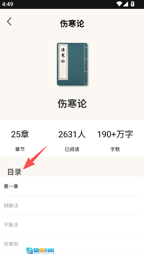 2、具备目录查看功能,书籍目录呈现清晰(例如《伤寒论》里的辨脉法章节),方便中医爱好者快速定位学习章节,从而提升学习效率。