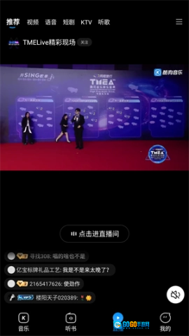 4、进入直播板块,感受各类精彩的直播内容,随时点歌,让主播演唱你喜爱的歌曲。