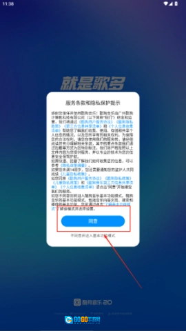 1、打开应用后,点击同意相关条款,就能顺利进入软件,开启音乐之旅。