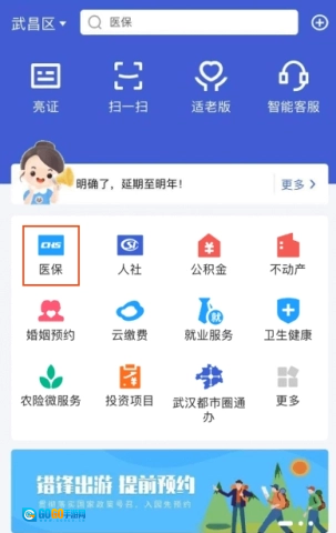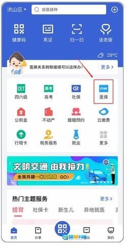 1、在应用商店鄂汇办,进入首页后选择“医保”。