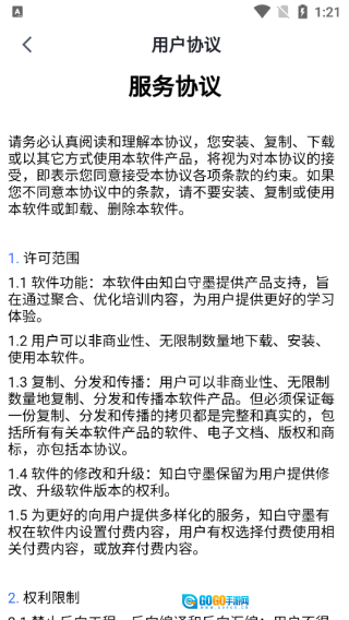 4、设有用户协议专区,专区内对各项功能、使用注意事项等内容进行了详细说明。