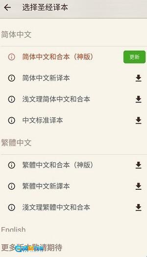 提供圣经译本的选择功能。