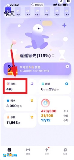 打开Otter Life应用,在首页里找到之前设置好的健康目标。