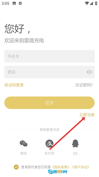 1、点击【立即注册】,进入雷晟充电注册页面。