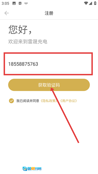 2、在注册页面输入手机号,点击【获取验证码】。