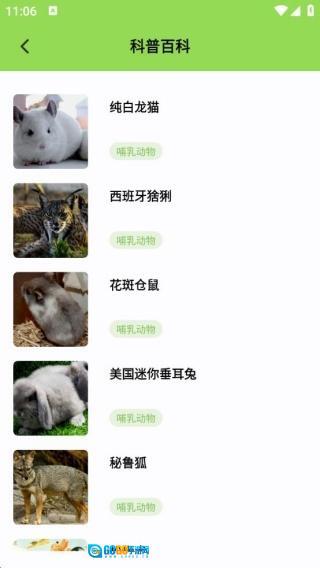2. 科普百科知识界面涵盖了各类可爱小动物的百科知识,便于用户直接查阅与了解。