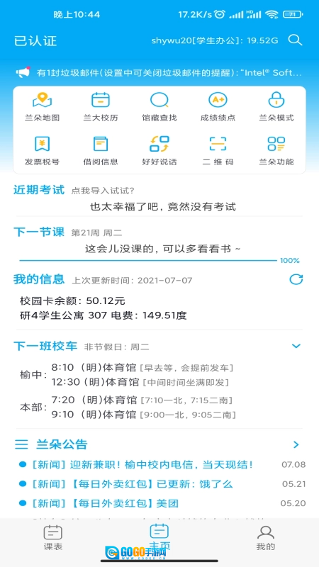 这款校园服务应用由官方出品,使用起来安全又放心!特别适合学生群体,它的课表功能十分便捷,支持从教务系统一键同步实时数据,还能快速帮你定位到空闲的自习教室。另外,作业到期提醒、校园网费充值、智慧一卡通管理等实用功能也都包含在内,全方位满足你在校园里的各类生活需求。有需要的同学,可别错过这个好用的工具哦!