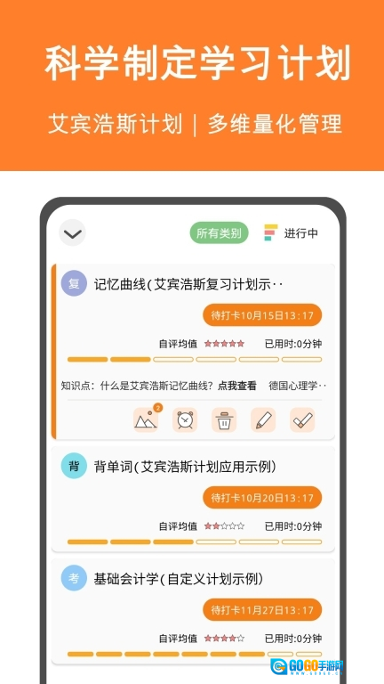 借助艾宾浩斯记忆法,可快速批量生成学习复习计划,助力自我提升效率,强化长期记忆效果。该计划涵盖任务计时、自评、提醒等核心功能,同时支持桌面小部件快捷打卡,帮助您专注于计划的落地执行。