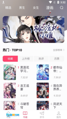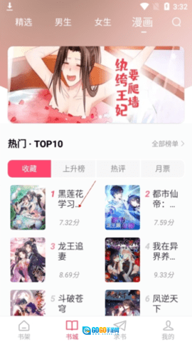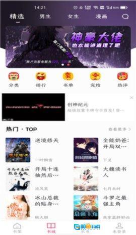软件随后会进入书城精选页面,在该页面中,你可以看到包含精选、女生、男生、漫画在内的分类,此外还有排行、书单、完结以及热评小说漫画等内容。