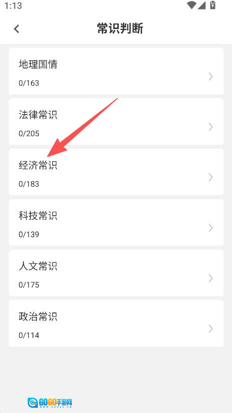 在常识判断板块里,找到经济常识这类细分领域并点击,就能开始刷题了。