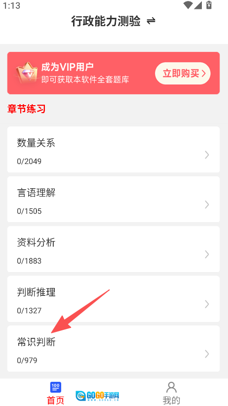 1、启动软件后,找到并进入行政能力测验中的常识判断模块。