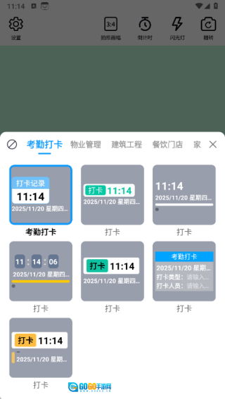 2、点击水印按钮,可选择考勤打卡、物业管理、建筑工程、餐饮工程等不同场景对应的水印。
