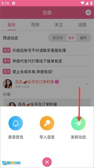 在主页点击底部的【音圈】选项,就能进入音圈动态页面。