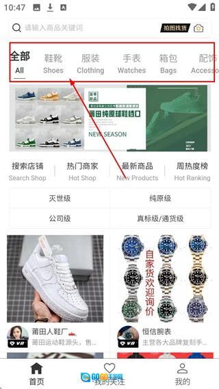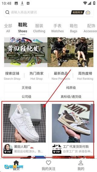在首页挑选商品分类,像【鞋靴-Shoes】这类,就可以查看该分类下的商品了。