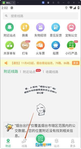 在首页点击底部的【线路】选项,就能进入线路查询页面。