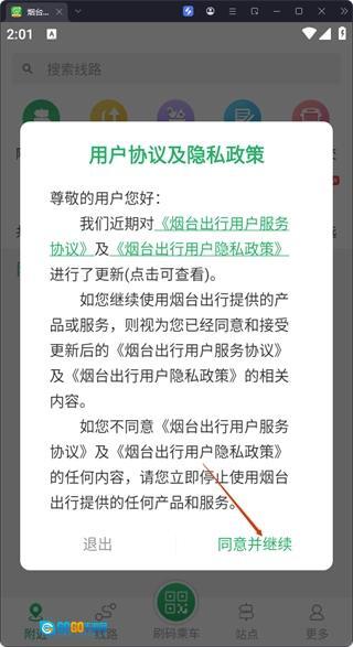 请您仔细阅读《烟台出行用户服务协议》和《烟台出行用户隐私政策》,若确认无误,请点击【同意并继续】按钮。