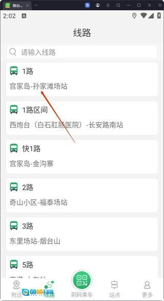 在线路页面,选择像【1路】这样的公交线路,就能进入该线路的详情界面。