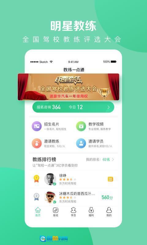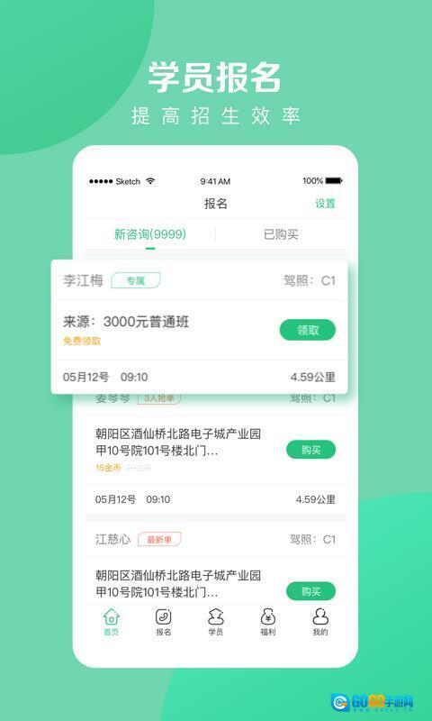 1、借助软件的招生名片与报名咨询功能,教练能够主动展现自身教学优势,从而吸引更多学员报名。