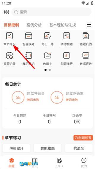 在八大员题考拉首页,点击“章节练习”选项,即可进入章节练习分类页面。