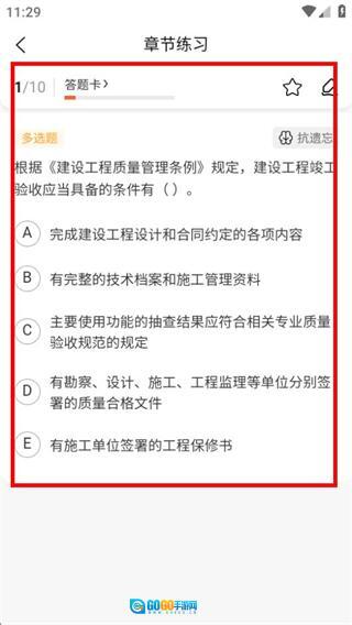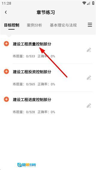 进入章节练习页面后,点击“建设工程质量控制”相关选项,即可进入对应的题目练习界面。