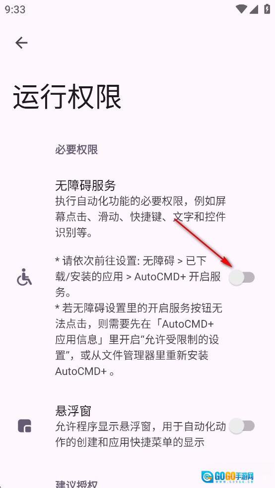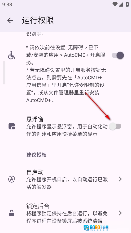 返回软件点击悬浮窗后面的开关