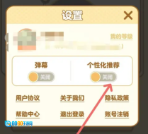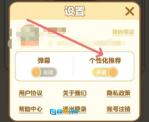 2、在设置页面中,找到个性化推荐开关