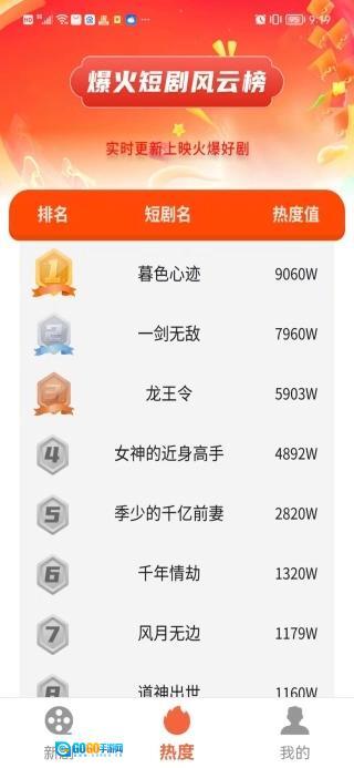 在热度页面里能知道哪些短剧更受大家喜爱,方便第一时间去观看。