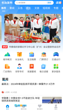 1、打开长治发布后,首页汇集了政务公告、民生资讯等多种功能板块,方便用户进行浏览与使用。